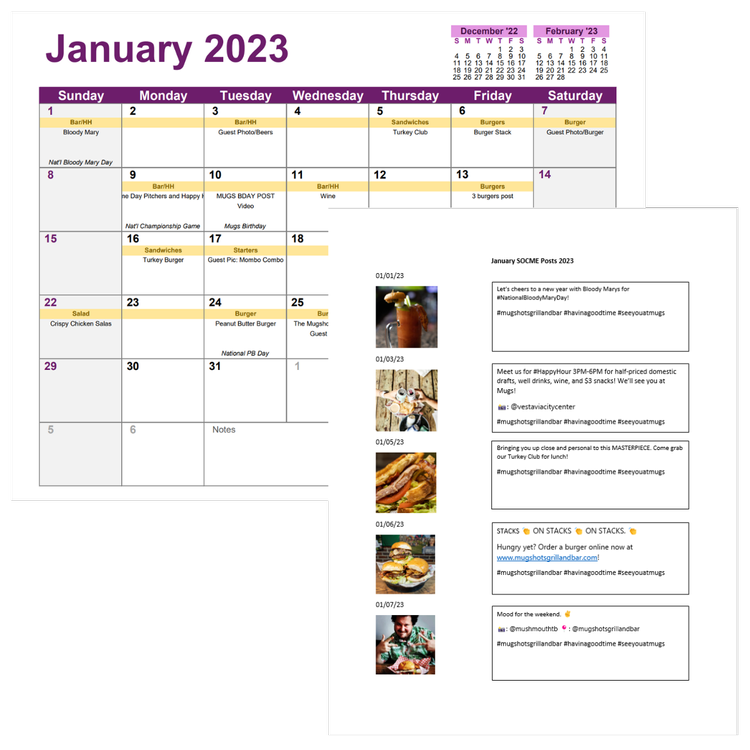 Monthly content calendar and document with all of the upcoming month’s posts and captions, so that our franchisees and general managers WERE aware of what is upcoming on social media